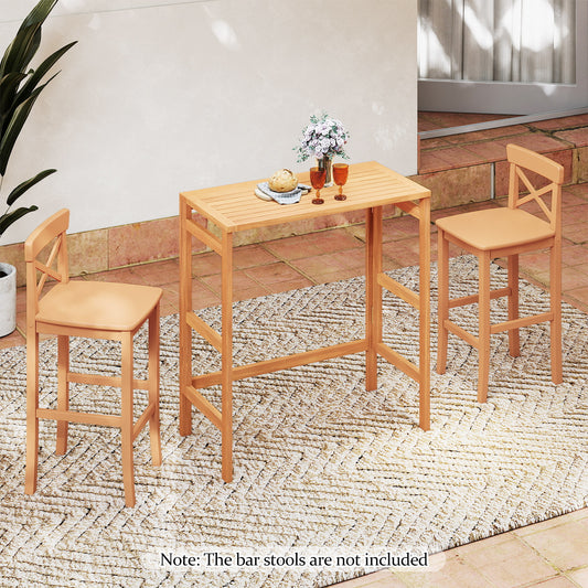 Acacia Wood Outdoor Bar Table with Slatted Tabletop for Balcony