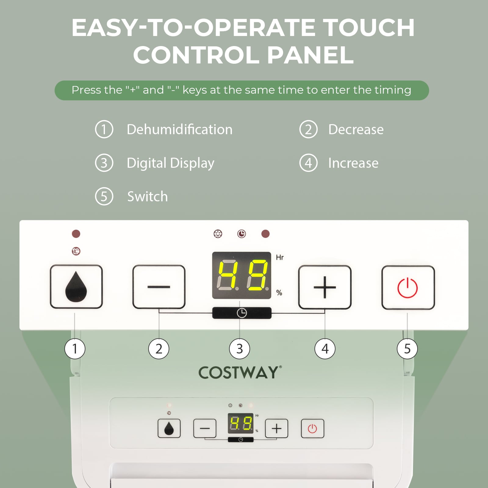 Efficient dehumidification with an adjustable humidity range of 30% - 80% Widely used in the home bedroom basement bathroom garage 3 dehumidification modes and 24-hour timer meet different needs LED touch control panel makes it simple to operate Visible water level allows you to see collected water The air filter net can be easily detached and washed Overflow protection and auto defrost function Easy to move with the top lifting handle Quiet operation and energy-saving Manual and continuous drainage