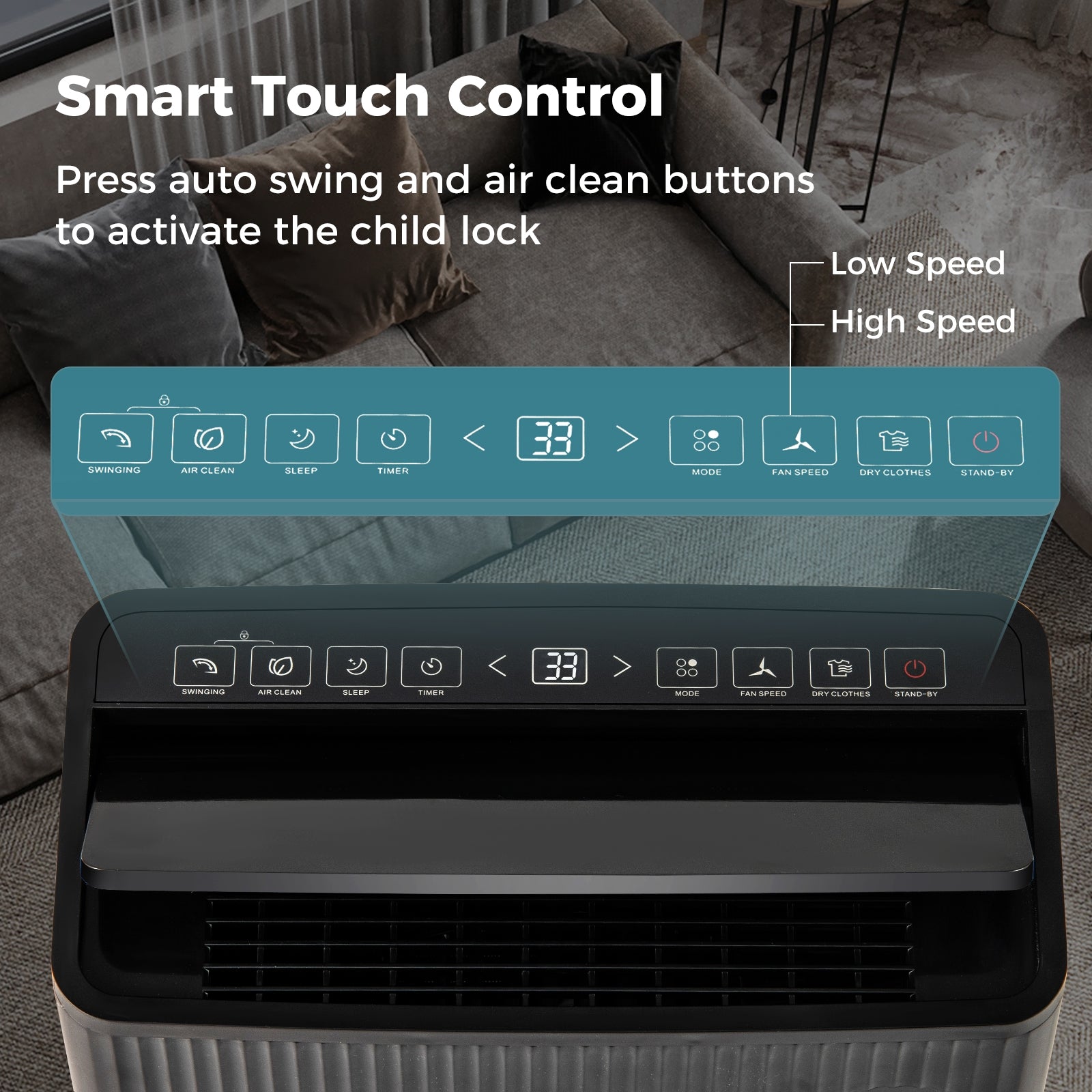 â— Easy-to-operate touch control panel with clear digital display