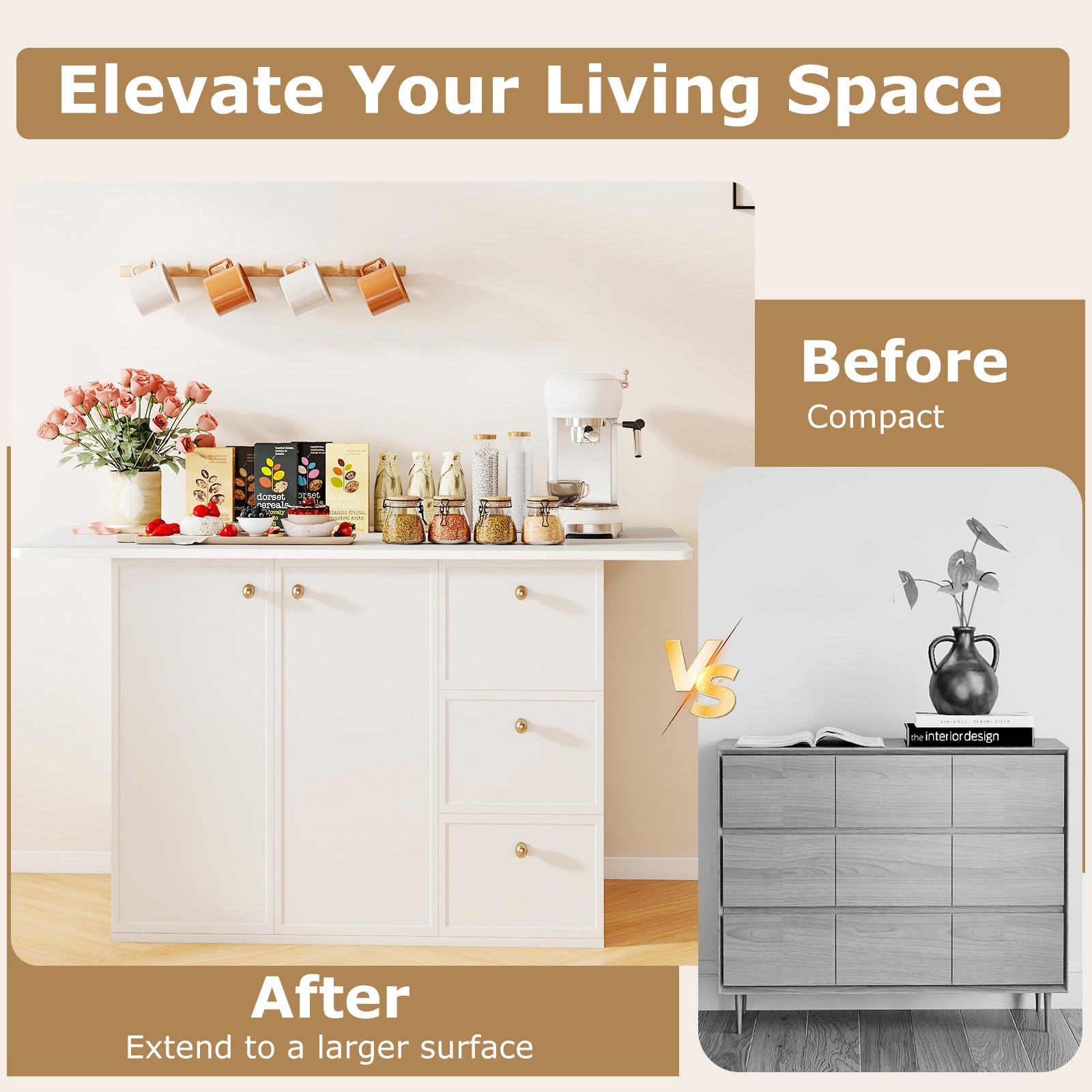 This one-piece desktop can be combined with different base as you like to present you a fantastic desk. The large surface provides abundant room for working essentials keeping everything you need at hand and improving your working efficiency. Dual cable holes also make it suitable for 2 monitors and provide you with multi-task convenience. You can’t miss this multifunctional desktop!
