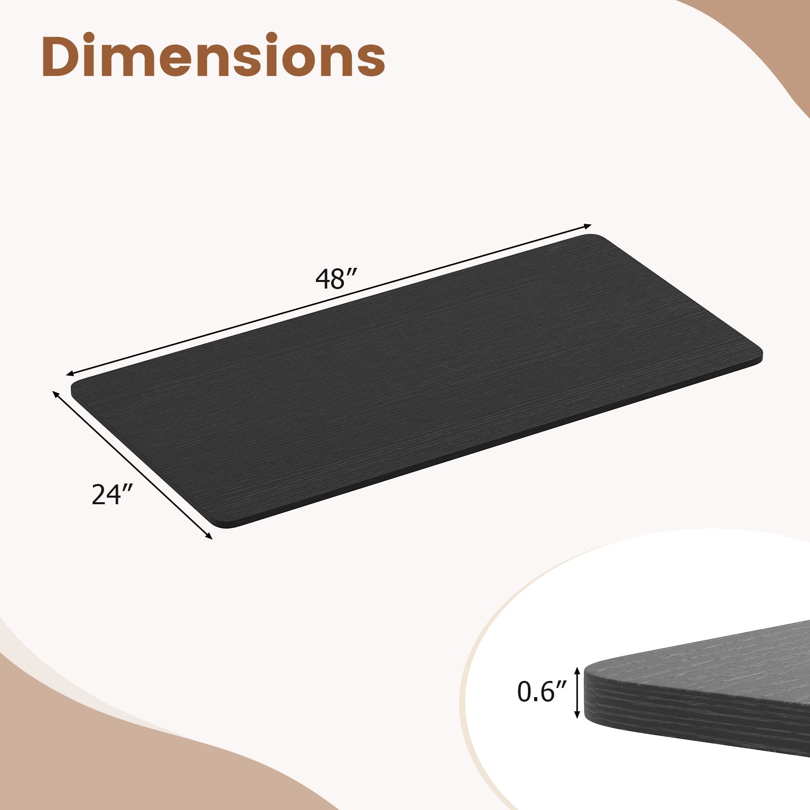 | Overall Dimensions | 48" x 24" x 0.6" (L x W x H) |